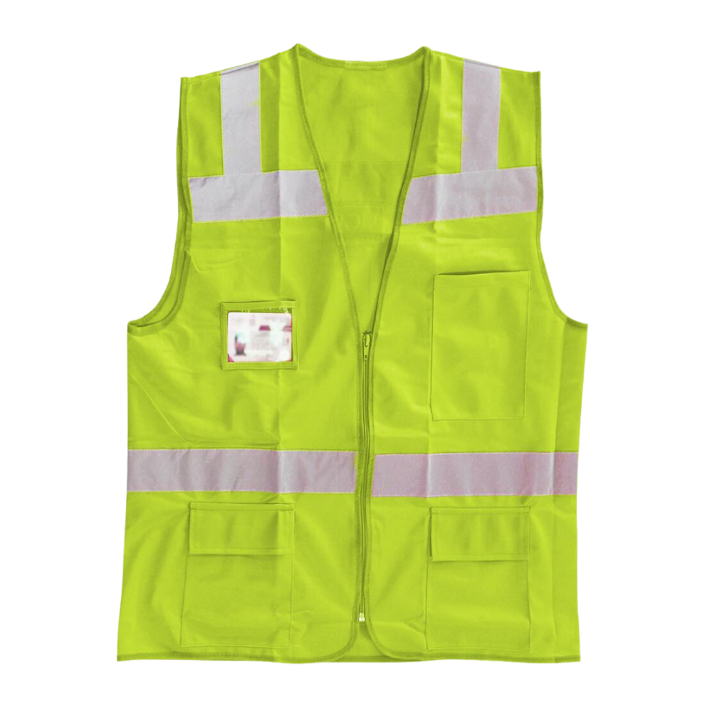 Chaleco fabricado en tela 100% poliester de alta visibilidad.