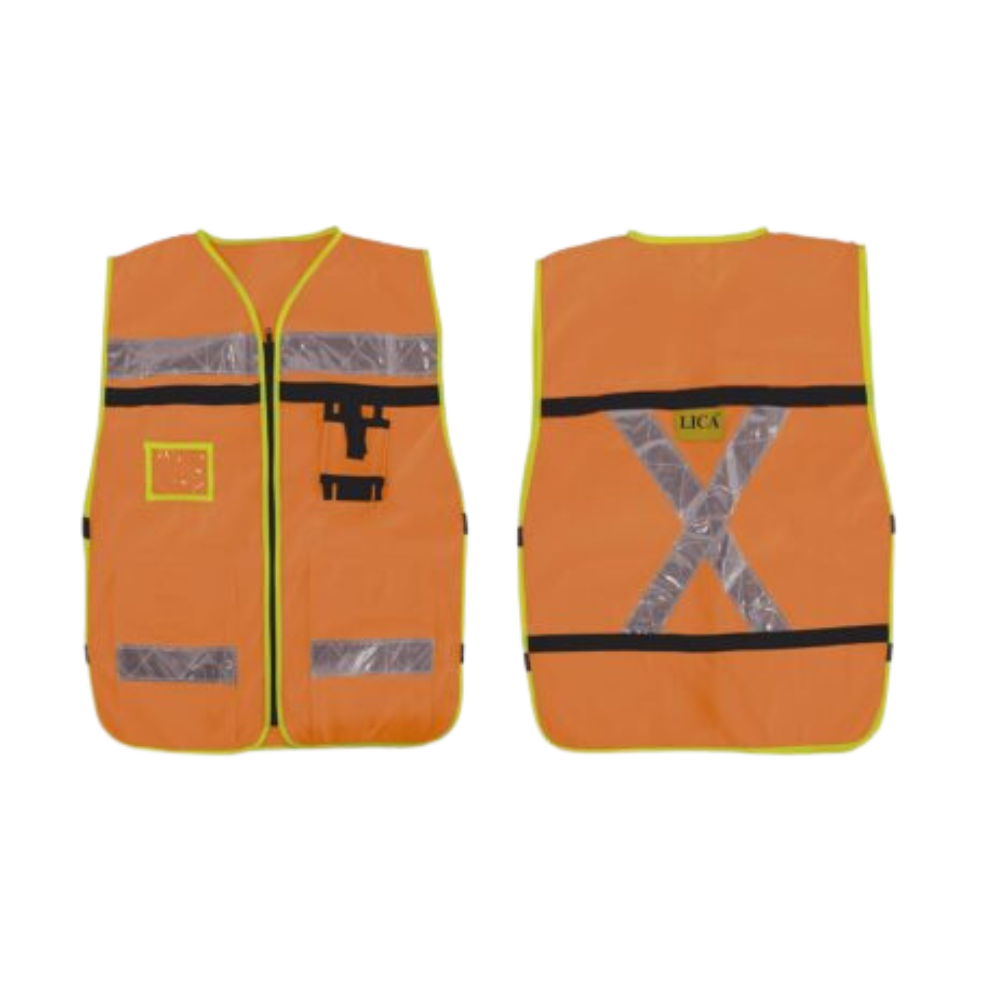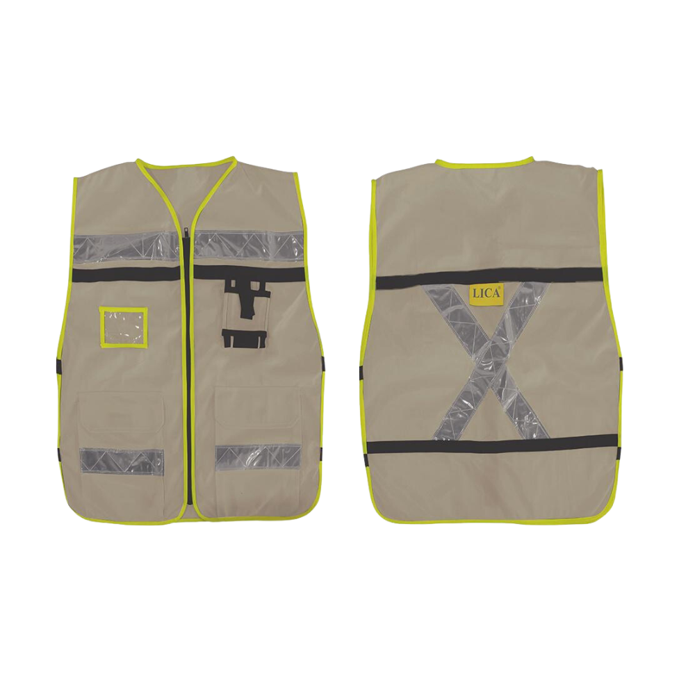 Con 2 bolsas para transportar artículos personales. Área para credencial, celular o radio. Talla: Unitalla.