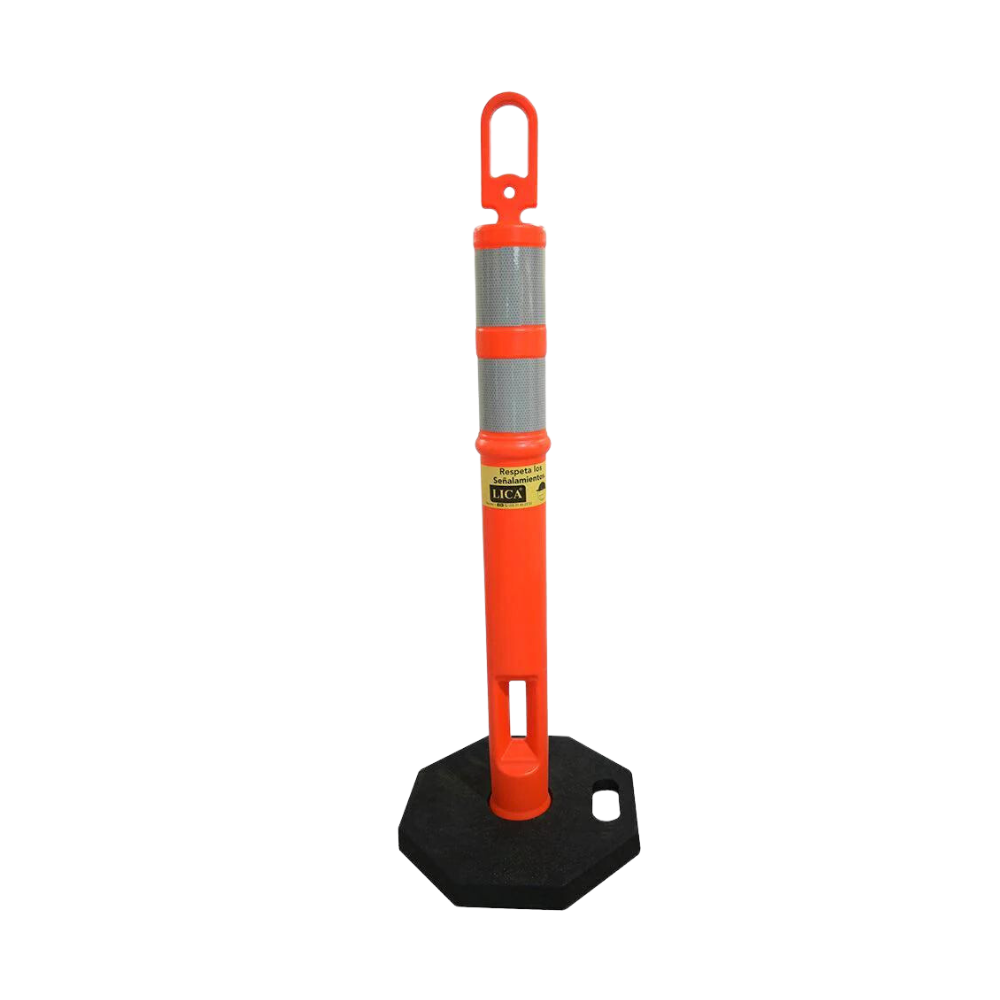 Poste marca LICA color naranja con doble reflejante y base hexagonal